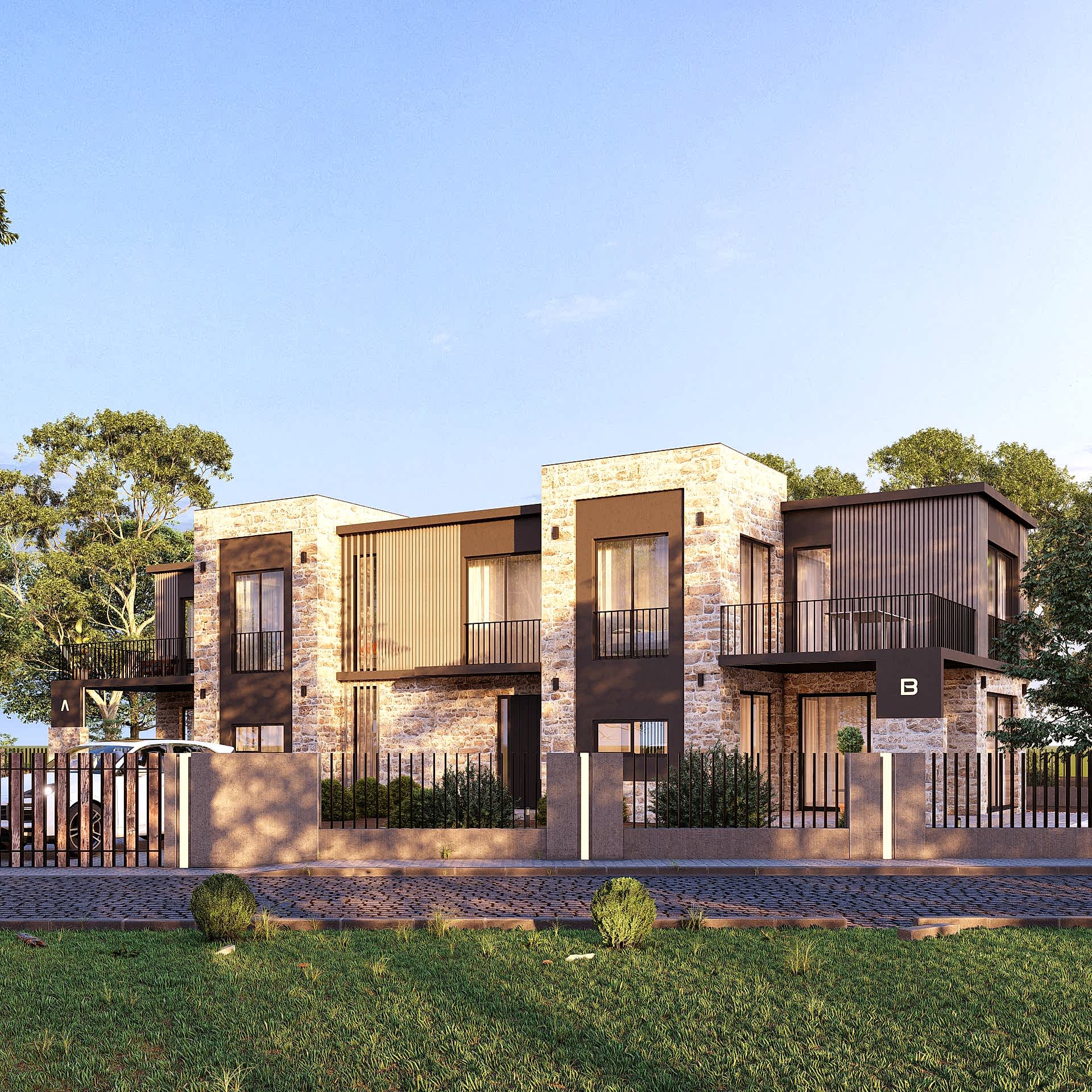 Foça’da konumlanan ve iki ayrı bağımsız birim içeren yapının tasarımında, bölgeye özgü özel malzemelerle mevcut dokuya entegre olacak bir yapı oluşturma amacımız ön plandaydı. Bu özel malzemelerin kullanımıyla binanın estetik çekiciliğini artırmayı hedefledik.